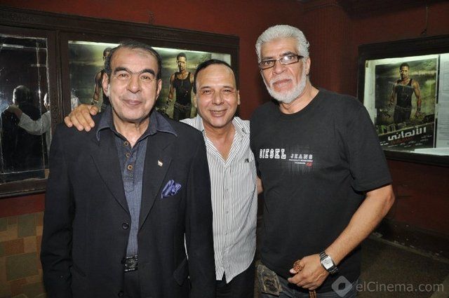صورة تجمع الفنان طارق النهري وفيصل خوشيد وأحمد السرساوي في العرض الخاص لفيلم الألماني.