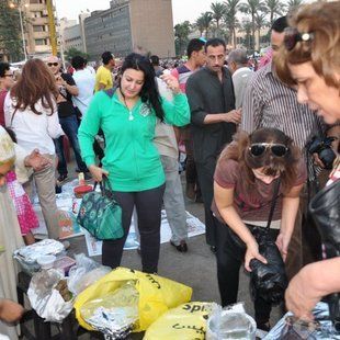 Anti-Morsi and pro-Morsi protesters aren't the only Egyptians gathering in Cairo's emblematic Tahrir Square these days. Yesterday a number of prominent actors and intellectuals...Read more gathered there for iftar, the breaking of the fast during Ramadan. The event was organized by the Tamarod campaign, whose grassroots petition to unseat Morsi eventually led to his ouster. There to break bread from the entertainment world were actress Jehan Fadel, actress Manal Salama, actor Mohamed Eladl, and TV presenter and singer Salma Sabahy. Among the intellectuals who attended were Gamal Bakheet, activist and media figure Gamila Ismail, as well as engineer Mamdouh Hamza, president of the tour guides' union Mohamed Gharib, Ahmed Abdel Aziz, and Suhair Abdel Qader, vice chairman of the Cairo film festival.