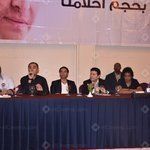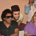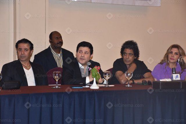 جانب من المؤتمر الصحفي الذي عقده الفنان هاني شاكر في إطار حملة ترشحه لمقعد نقيب الموسيقيين بحضور عدد كبير من كبار نجوم الغناء في مصر والوطن العربي.