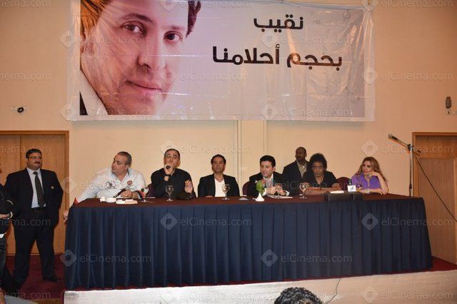 جانب من المؤتمر الصحفي الذي عقده الفنان هاني شاكر في إطار حملة ترشحه لمقعد نقيب الموسيقيين بحضور عدد كبير من كبار نجوم الغناء في مصر والوطن العربي.