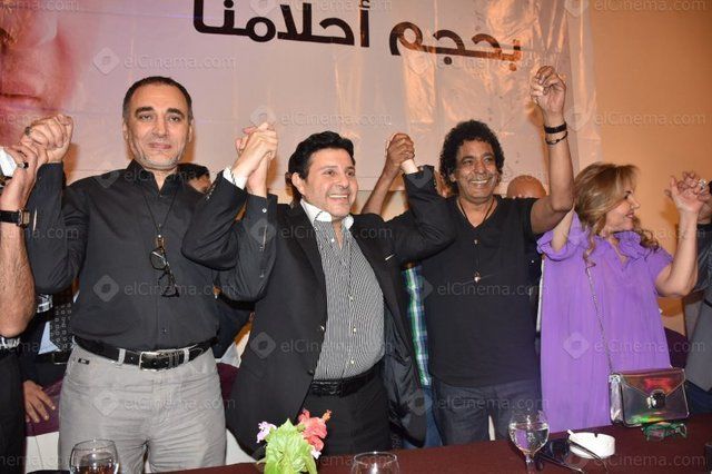 جانب من المؤتمر الصحفي الذي عقده الفنان هاني شاكر في إطار حملة ترشحه لمقعد نقيب الموسيقيين بحضور عدد كبير من كبار نجوم الغناء في مصر والوطن العربي.