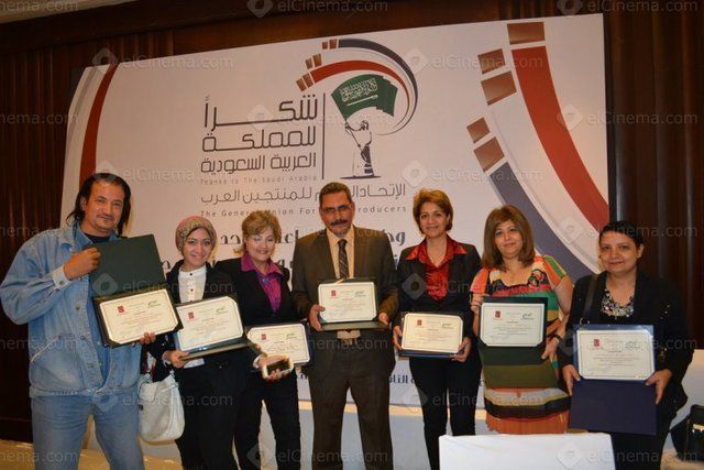 جانب من المؤتمر الصحفي للاتحاد العام للمنتجين العرب للإعلان عن حفل (شكرًا للمملكة العربية السعودية) بحضور عدد من نجوم الفن والإعلام.