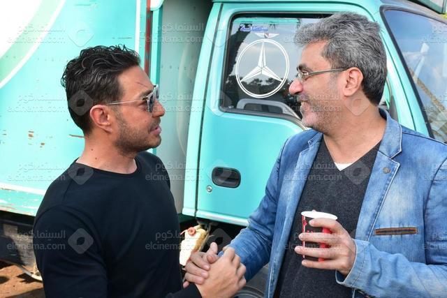 أحمد زاهر وحسين فهمي وصلاح عبد الله في الاحتفال ببدء التصوير الرسمي لفيلم (فارس).