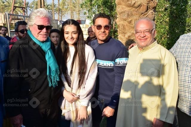 أحمد زاهر وحسين فهمي وصلاح عبد الله في الاحتفال ببدء التصوير الرسمي لفيلم (فارس).