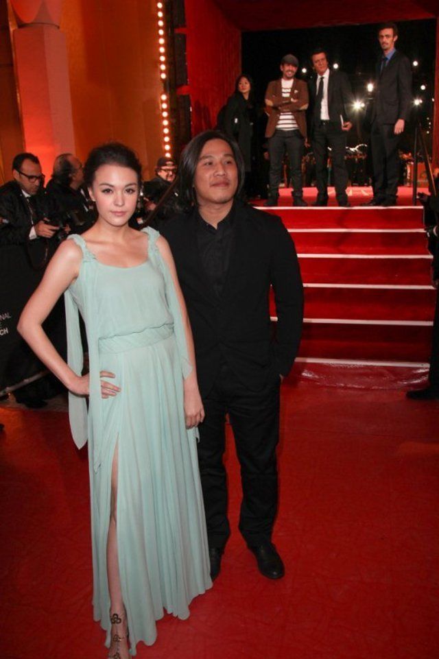 لقطة لكلا من تشانج يونج تشي وساندرين بينا بحفل افتتاح مهرجان مراكش السينما الدولي 12