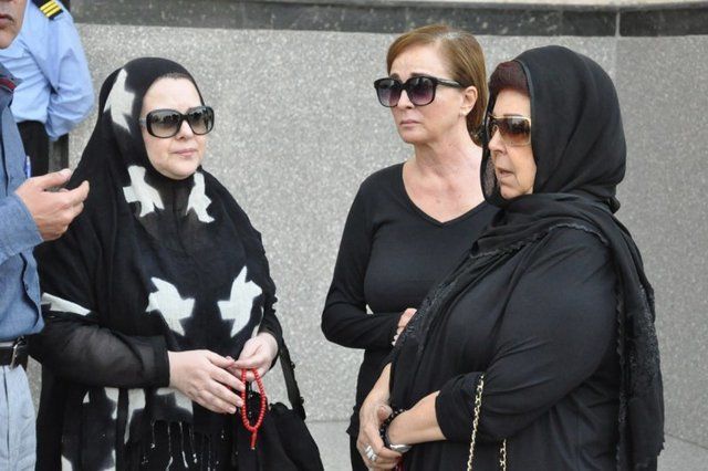 الفنانات رجاء الجداوي ونجلاء فتحي ودلال عبد العزيز اثناء تشيع جثمان الفنان الراحل عمر الحريري.