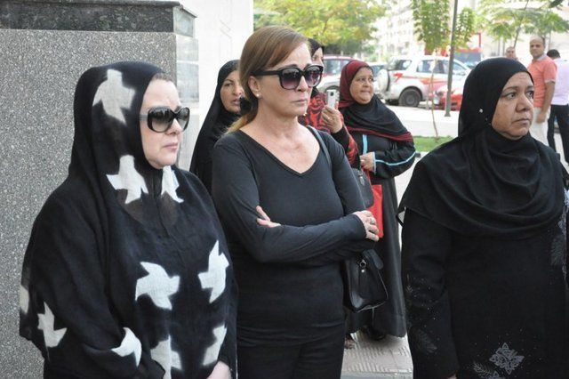 صورة تجمع الممثلة نجلاء فتحي ودلال عبد العزيز في عزاء الفنان الراحل "عمر الحريري".