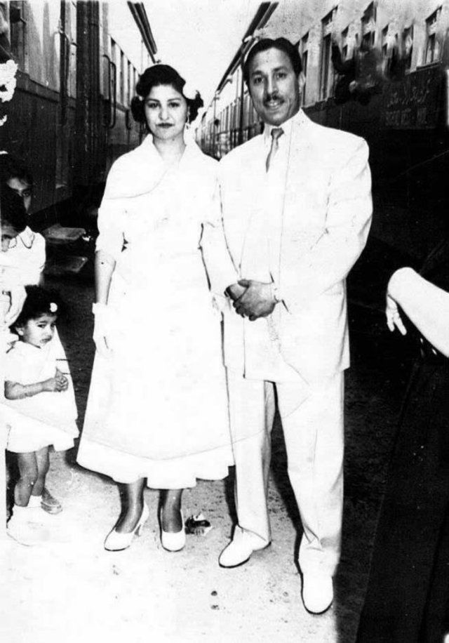 الفنان الراحل جعفر السعدي في بداية حياته الزوجية مع زوجته الفنانة المرحومة ماجدة السعدي باحدى محطات السكك الحديد .