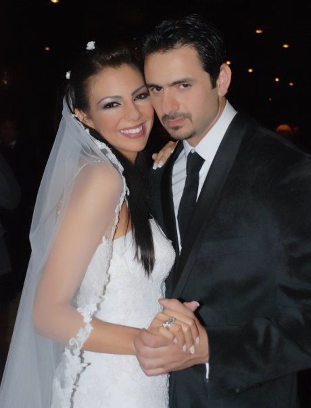 الفنان المصري عمرو مهدي يوم حفل زفافه على عروسه .
