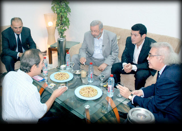 المخرج رفيق حجار مع مجموعة من النجوم ، منهم نور الشريف وجمال سليمان