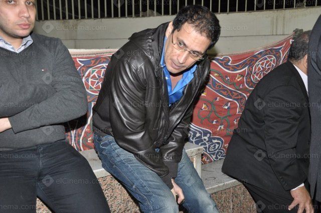 الفناني أثناء عزاء ابنة الفنان حسن حسنى.