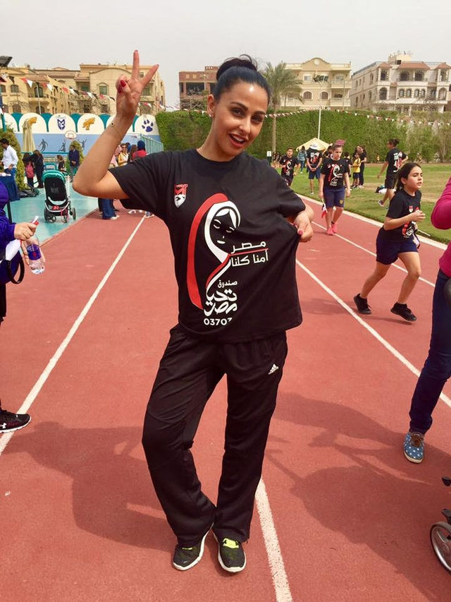 ميس حمدان خلال مشاركتها في مسيرة لدعم صندوق تحيا مصر.
