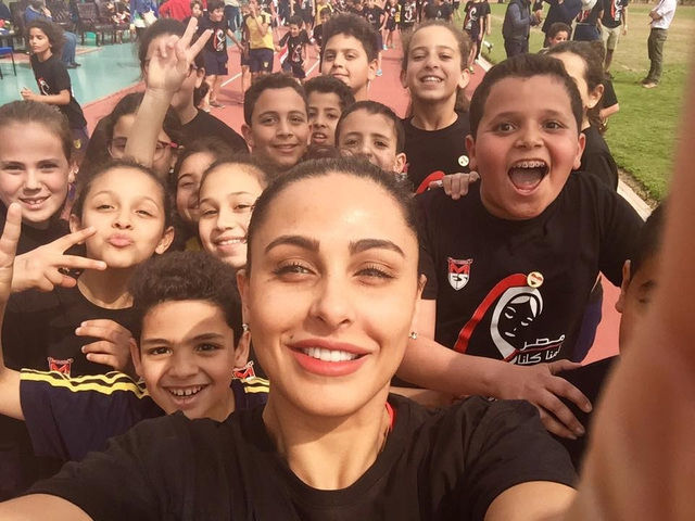 ميس حمدان خلال مشاركتها في مسيرة لدعم صندوق تحيا مصر.