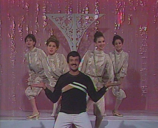 سمير غانم يقدم احد الاستعراضات فى فوازير فطوطة والشخصيات