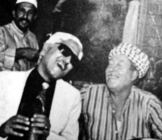 الفنان المرحوم خليل الرفاعي والمرحوم مطشر السوداني ، في لقطة ضمن مسلسل (لا وقت للشفقة) ١٩٨٩ .