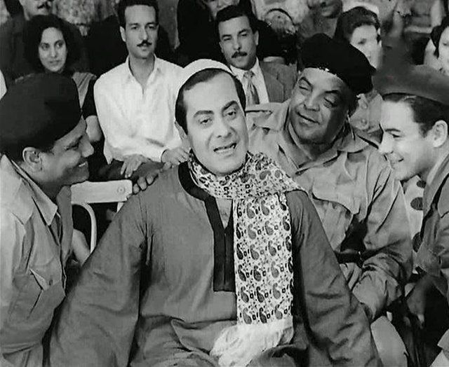 الفنان أحمد رمزى و المطرب فريد الأطرش والفنان السيد بدير، فى مشهد من فيلم "ودعت حبك" وفيها يغنى الأطرش أغنية "وحدانى هاعيش".