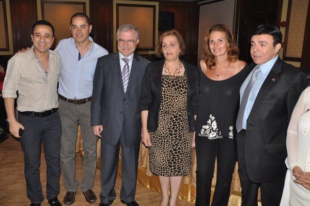 صورة لسمير صبري ويسرا وأحمد شفيق وايهاب فهمي في حفل عيد ميلاد الشحرورة الـ 83 عام 2011.