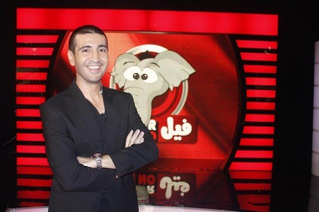 وسام الصباغ أثناء تصويره برنامجه فيل Or No فيل" .