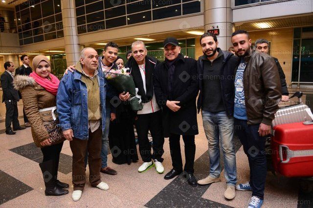 جانب من استقبال عدد من الفنانين للمنتج (أحمد السبكي) بعد عودته من رحلة علاجية.