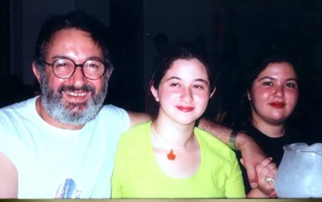 نور الشريف في صورة عائلية مع ابنتيه سارة ومي.