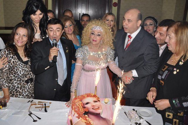 صورة لصباح وايمان وغادة ابراهيم وسمير صبري في حفل عيد ميلاد الشحرورة الـ 83 عام 2011.
