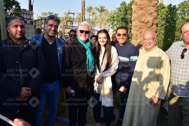 أحمد زاهر وحسين فهمي وصلاح عبد الله في الاحتفال ببدء التصوير الرسمي لفيلم (فارس).