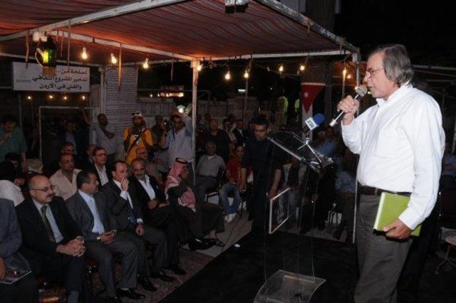 الفنان الكبير محمد القباني وهو يلقي كلمة أمام الفنانين الأردنيين المعتصمين