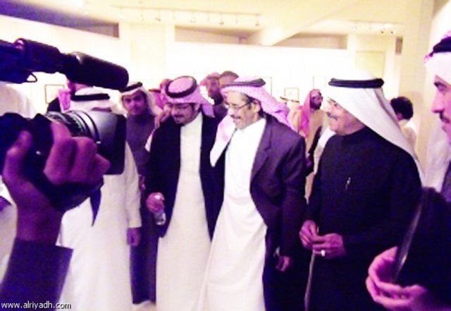 الحماد متجولا مع الفنانين خلال افتتاحه معرض مرسم المواهب