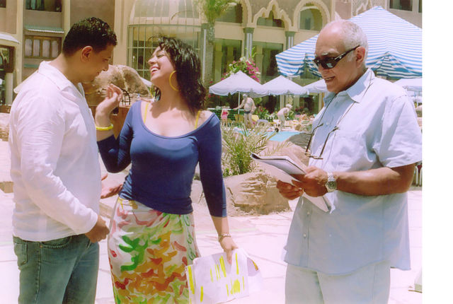 مسلسل سفير النوايا الحسنة ٢٠٠٧ من إخراج الاستاذ ابراهيم الشقنقيري صورة تجمع المخرج ابراهيم الشقنقيري و الفنانة منال الفطاطري أثناء البروفة