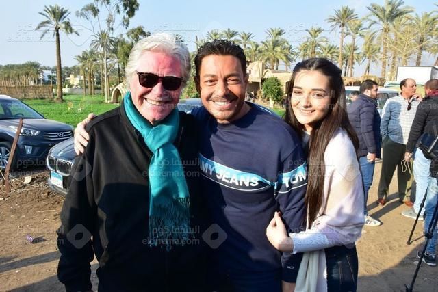 أحمد زاهر وحسين فهمي وصلاح عبد الله في الاحتفال ببدء التصوير الرسمي لفيلم (فارس).