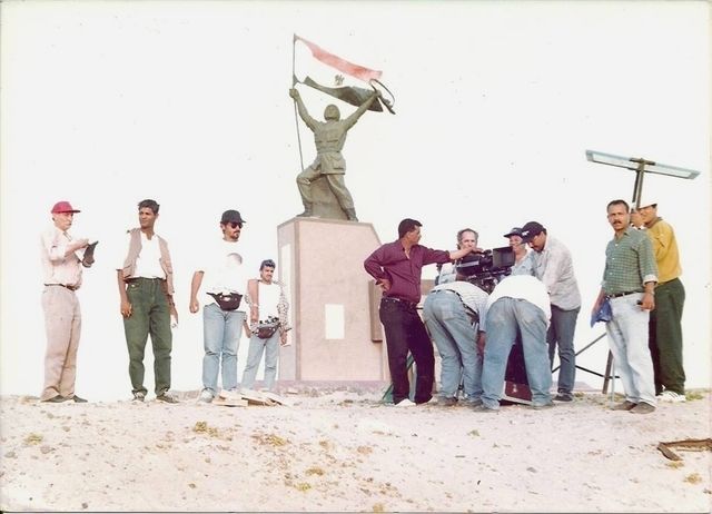 المخرج فخر الدين نجيدة ومساعد المخرج عبد الحميد أبو المجد بالقنيطرة شرق أثناء تصوير فيلم " هارمونيكا "