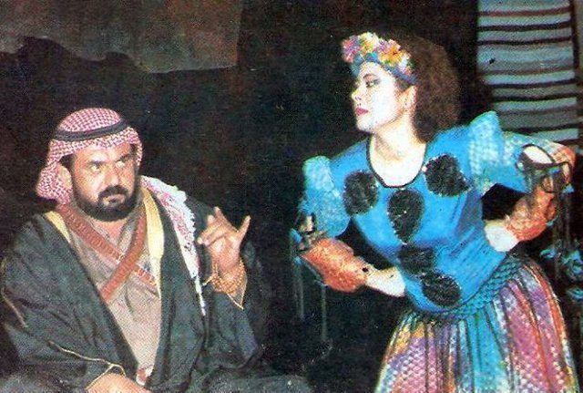 الفنانة ليلى محمد والفنان خليل ابراهيم في مشهد من مسرحية (سيدتي الجميلة)