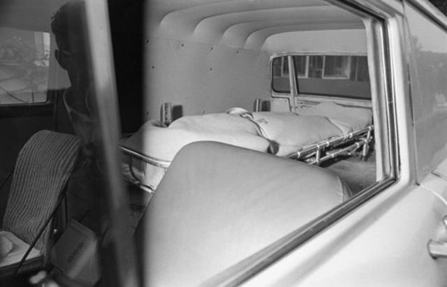 جثمان مارلين مونرو أثناء مغادرة المشرحة فى 5 أغسطس من عام 1962.