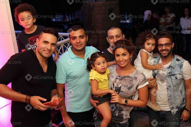 تامر حسني مع بسمة بوسيل وكل نجوم الاغنية في عيد ميلاد دينا راشد حرم منظم الحفلات وليد منصور.