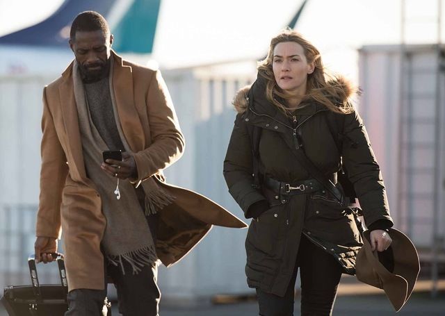 كيت وينسلت مع إدريس إلبا بالمطار فى مشهد من فيلم The Mountain Between Us 2017.