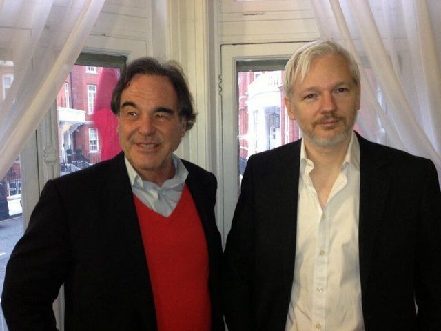 أوليفر ستون مع جوليان أسانج (مؤسس موقع ويكيليكس)