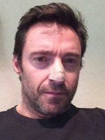 هيو جاكمان بعد استئصاله لخلايا سرطانية من أنفه