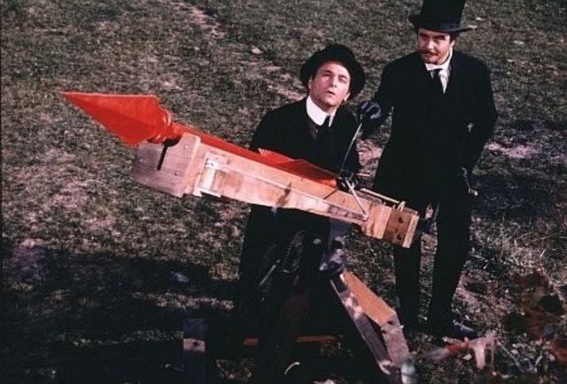 جاك ليمون ومساعده بيتر فالك يستعدان لإطلاق سهم ضخم على سيارة تونى كيرتس لعرقلته.