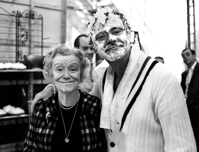 أم جاك ليمون تزوره فى موقع التصوير وواضح من الصورة من أين إكتسب جاك مواهبه الكوميدية.