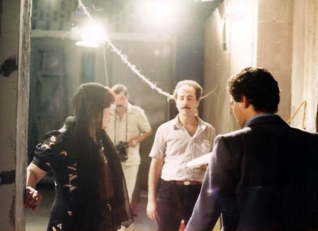 المخرج فلاح زكي اثناء توجيهه لكل من الفنانه القديره غزوه الخالدي و الفنان نزار السامرائي في مسلسل (وينك ياجسر) عام 1981م .