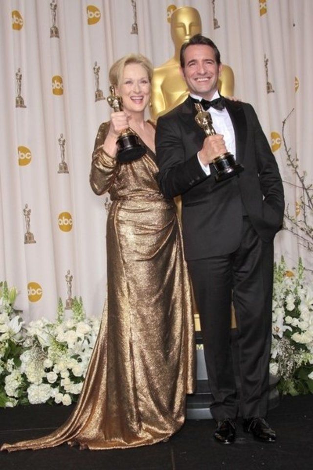 النجمة ميريل ستريب و النجم جان جيردين بعد حصولهما على أوسكار أفضل ممثلة و أفضل ممثل