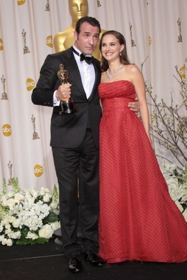 ناتالي بورتمان برفقة جان جيردين بعد حصوله على أوسكار افضل ممثل