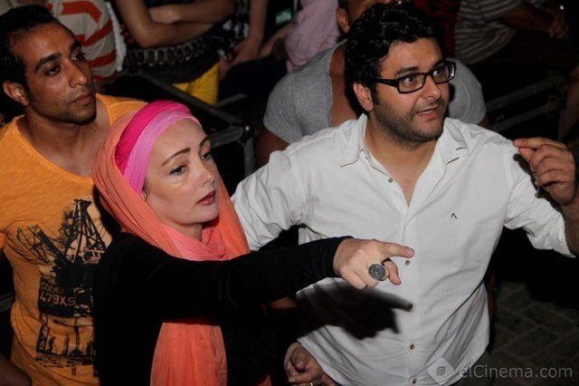 الفنانة عايدة الأيوبى مع منظم الحفلات وليد منصور قبل صعودها على مسرح حفلها ببورتو مارينا صيف 2013
