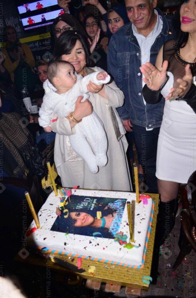 جانب من الاحتفال صغير في أحد كافيهات المهندسين الذي أقامت المطربة (وعد البحري) فيه حفل عيد ميلادها.
