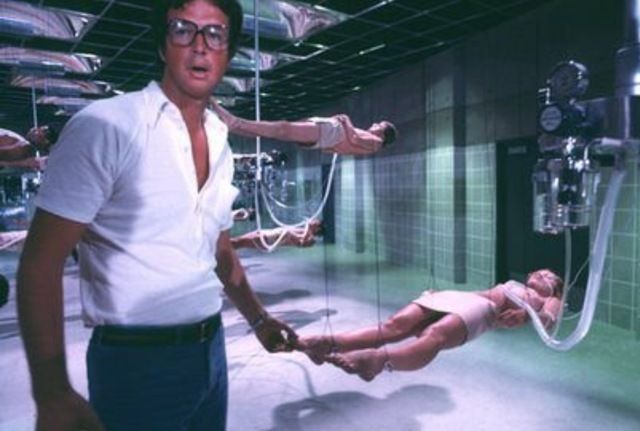 المخرج مايكل كريتون يعاين قاعة النصابين بالسبات فى معهد جيفرسون بولاية بوستون.