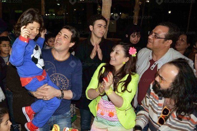 احتفال الفنانة بوسي ومجموعة من المطربين الشعبيين بعيد ميلاد ابنها ياسين