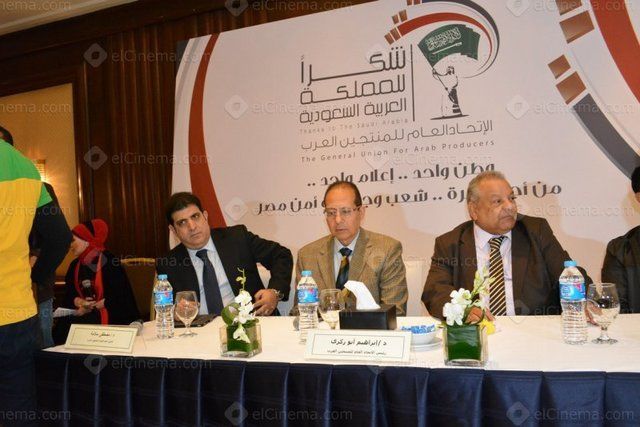 جانب من المؤتمر الصحفي للاتحاد العام للمنتجين العرب للإعلان عن حفل (شكرًا للمملكة العربية السعودية) بحضور عدد من نجوم الفن والإعلام.