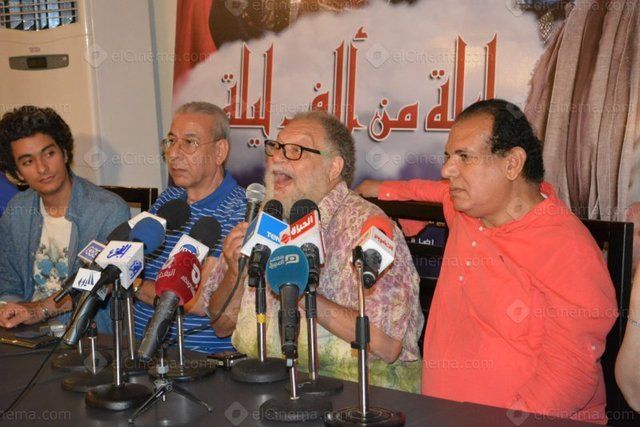 جانب من مؤتمر مسرحية (ليلة من ألف ليلة) ليحي الفخراني، بحضور بحضور أبطال العمل والوزير وشخصيات عامة.