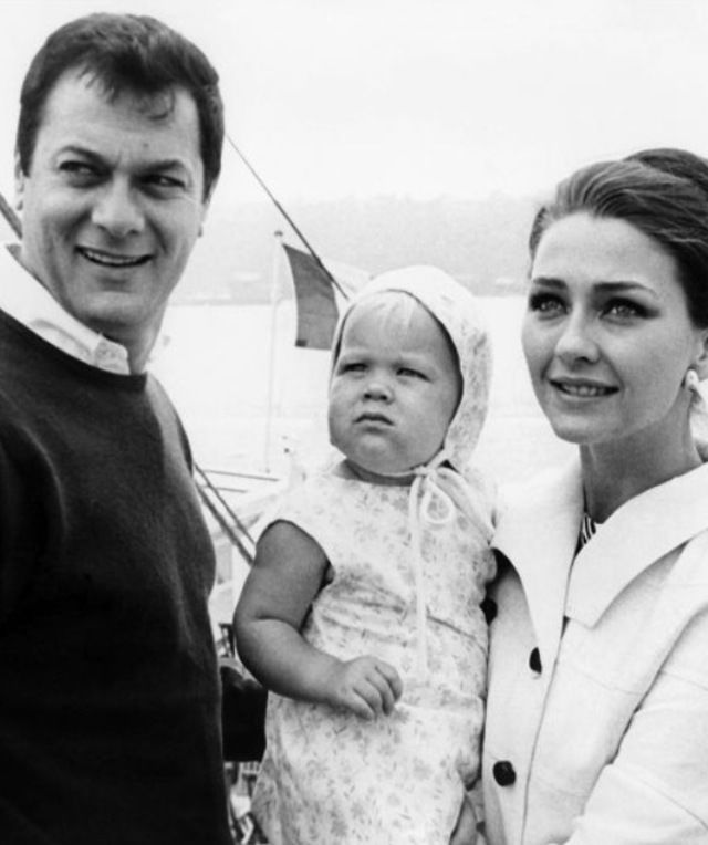 كرستين كوفمان وزوجها تونى كيرتس وبينهما ابنتهما ألكسندرا عام ١٩٦٥.