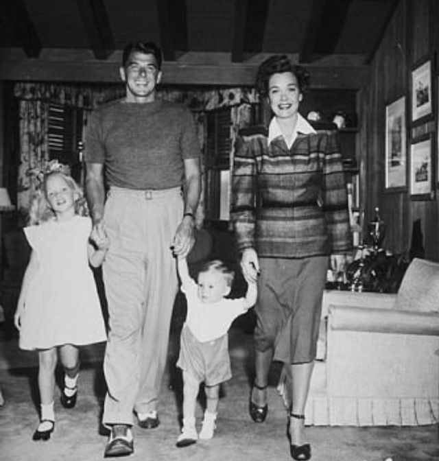 جين وايمان مع زوجها رونالد ريجان وابنهما مايكل وابنتهما مورين.